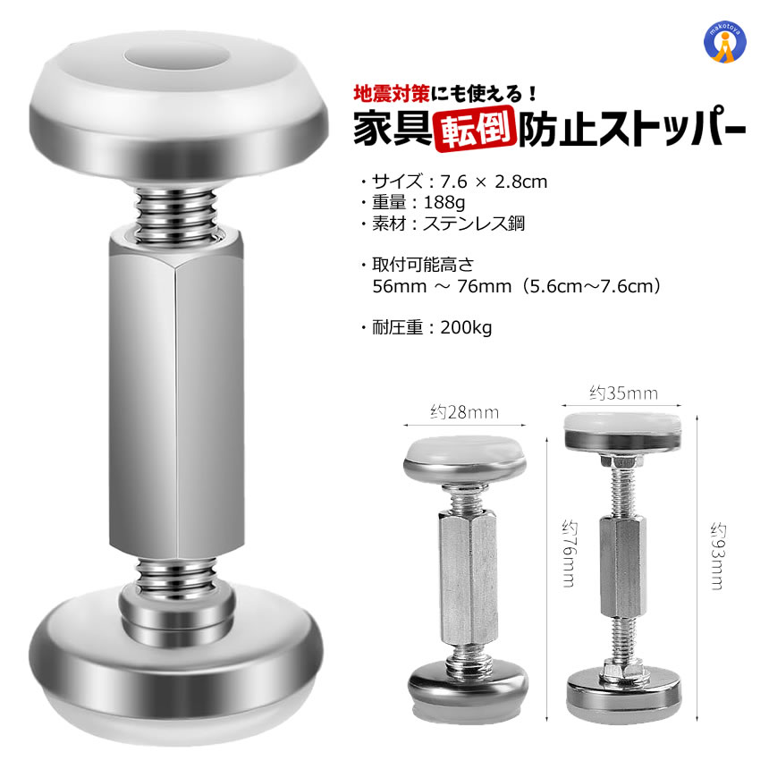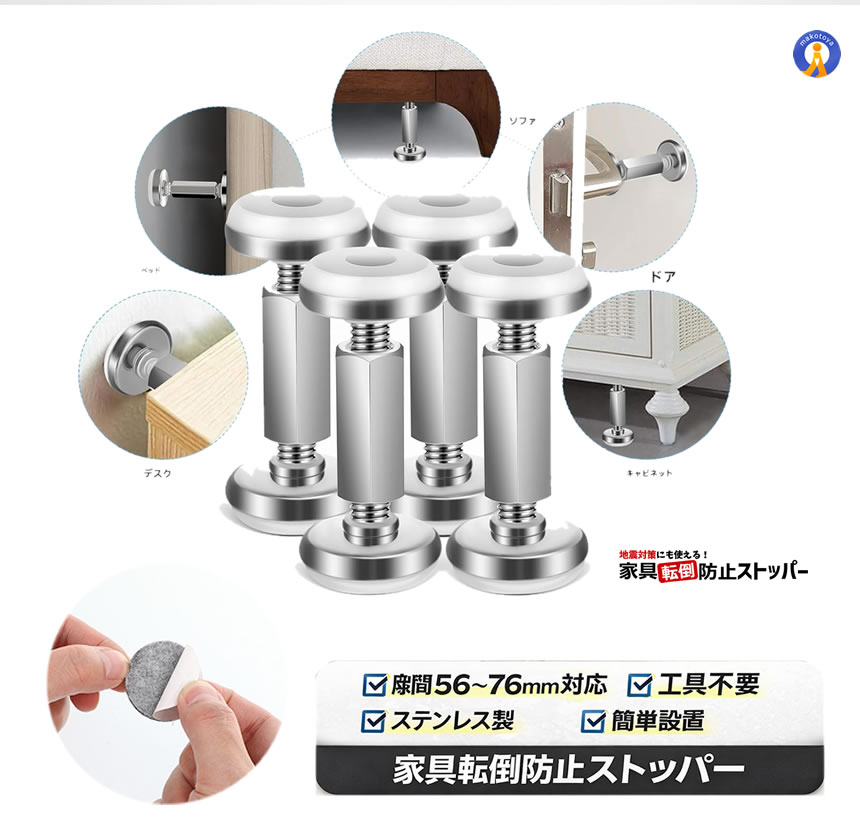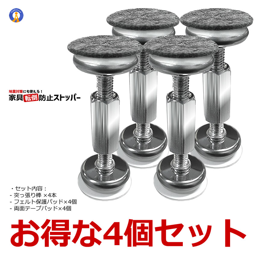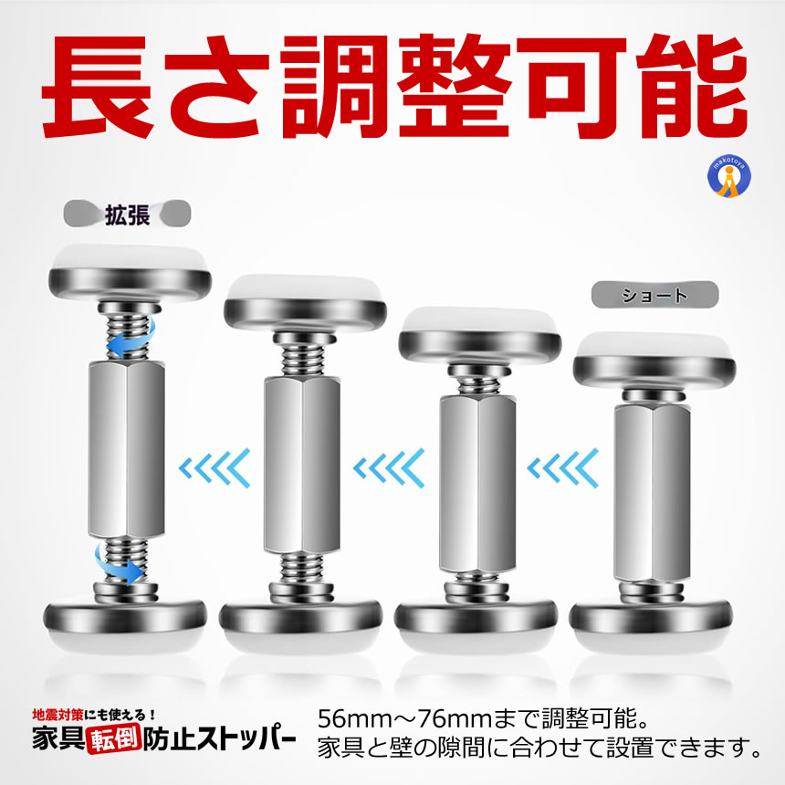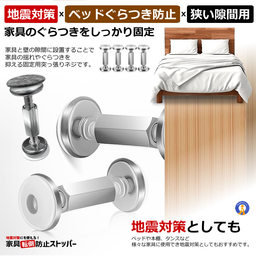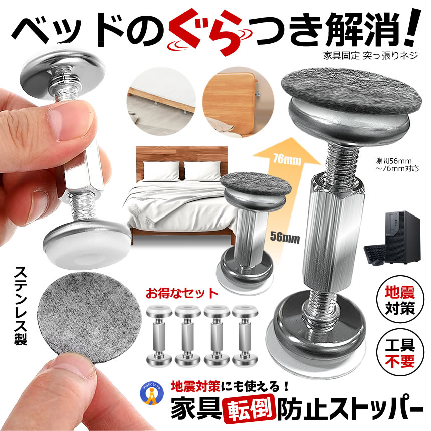 家具固定 突っ張り棒 4個セット 56?76mm ベッド固定器 転倒防止 地震対策 家具転倒防止 WALLMAMO