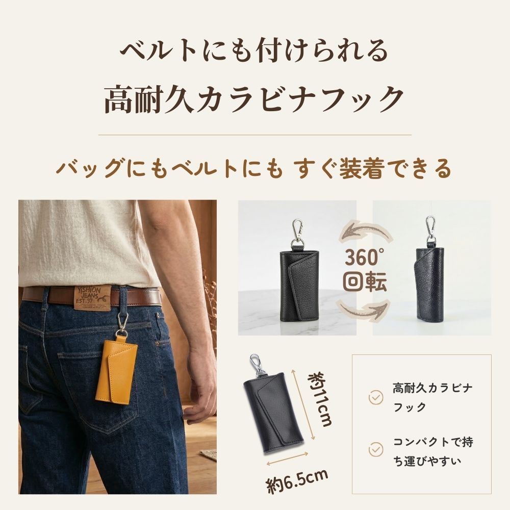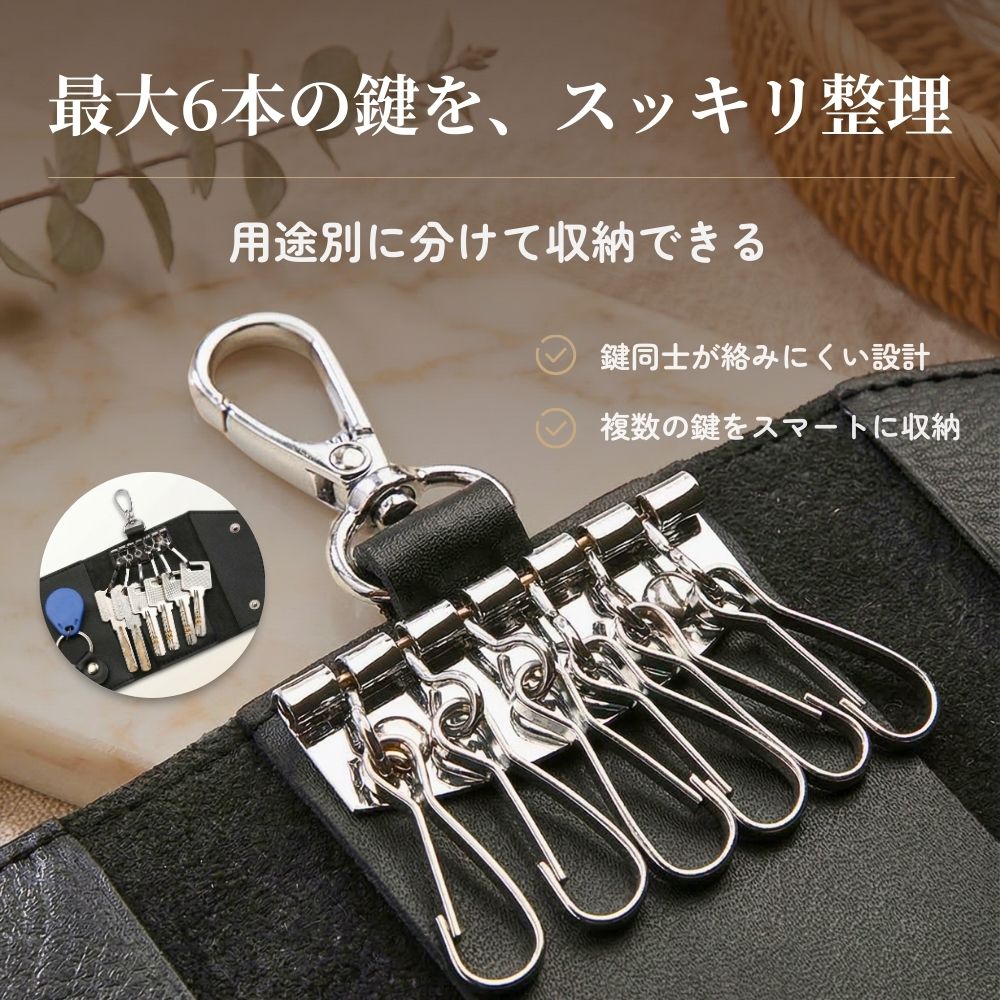 キーケース メンズ 安い 革 スマートキー メンズ レディース 6連リング おしゃれ 大容量 フック付き コンパクト シンプル カラビナ 30代 40代 50代 車