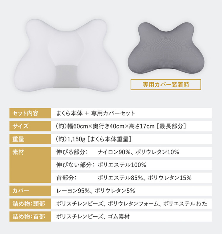| 仕様 | ■セット内容:まくら本体+専用カバーセット |
