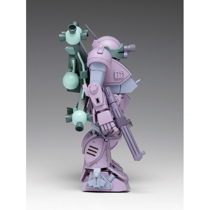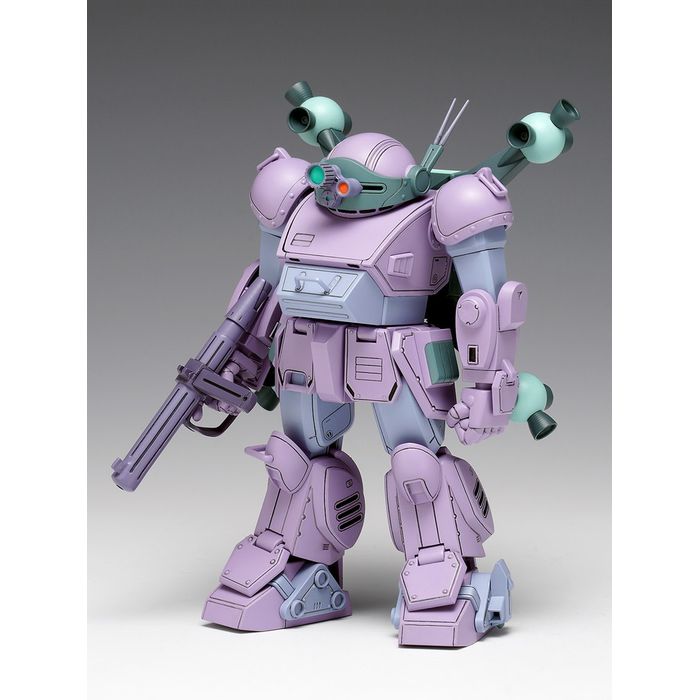 TVシリーズ「装甲騎兵ボトムズ」第1話でギルガメス軍の襲撃を受けた小惑星リドを守るべく、応戦したメルキア軍のスコープドッグ。ギルガメス軍のグリーン系とは異なるパープル系のカラーリングを身に纏ったメルキア軍のスコープドッグがラウンドムーバー仕様で登場します。キットはこれまでのシリーズ同様、接着剤不要のスナップフィットタイプで、各関節にはポリキャップを配したフル可動モデルとなっており、[ST版]ですので、外観の再現、組み立て易さを重視した仕様となっています。通常のヘビィマシンガンに加え、ペンタトルーパーが付属します。