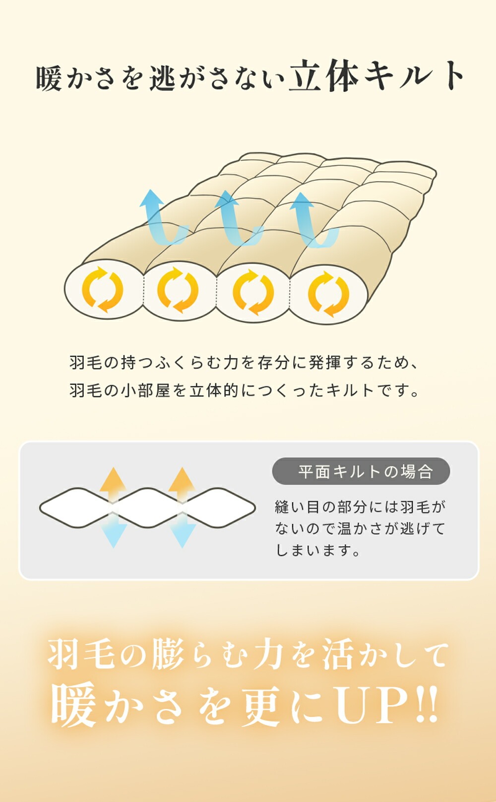 厳選したホワイトダックダウンを85%使用。