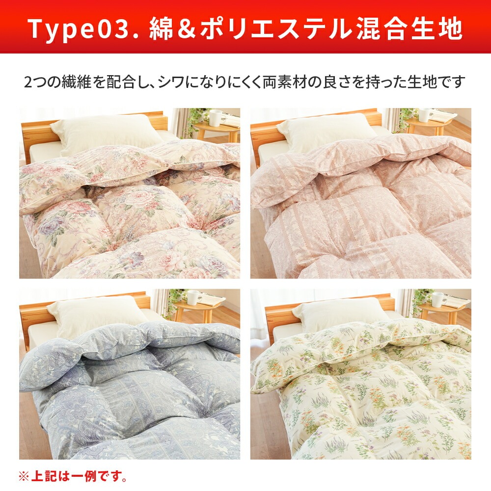 綿とポリエステルのいいとこ取りの混合生地の3種類からお選びいただけます。
