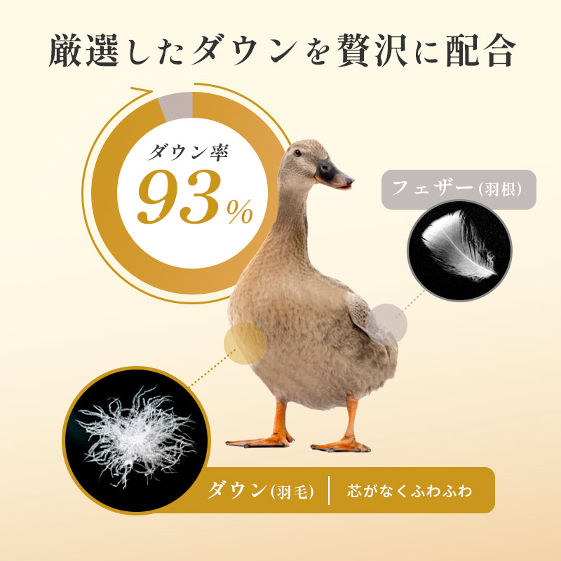厳選したダウンを贅沢に配合。ダウン率は93%、たっぷり1.2kg入り!