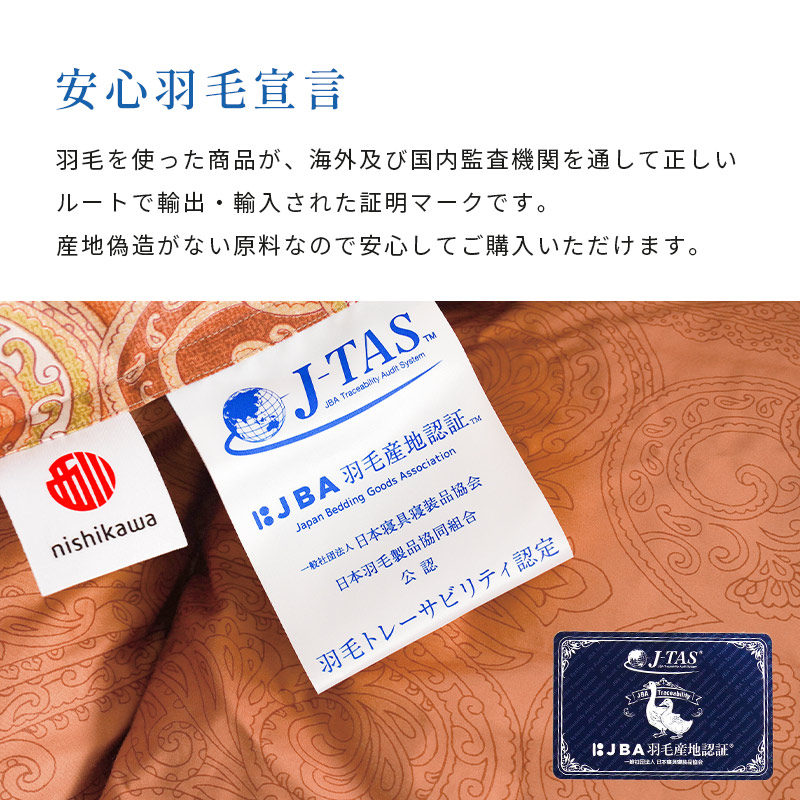 | 仕様 | 羽毛トレーサビリティ認定(J-TAS) |