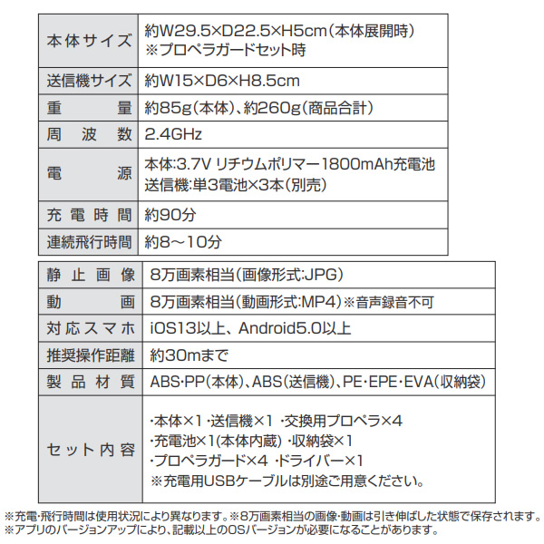 スマホからも操作できる空撮ドローン。飛行中に写真や動画をリアルタイムで録画可能、そのままスマホに直接データを保存できます。左右旋回・上昇下降はもちろん、360°フリップアクション(宙返り)、ヘッドレスモード、速度切り替えなどのスペシャルアクション機能を搭載。操作性抜群のドローンが360°自由自在に飛び回る!!