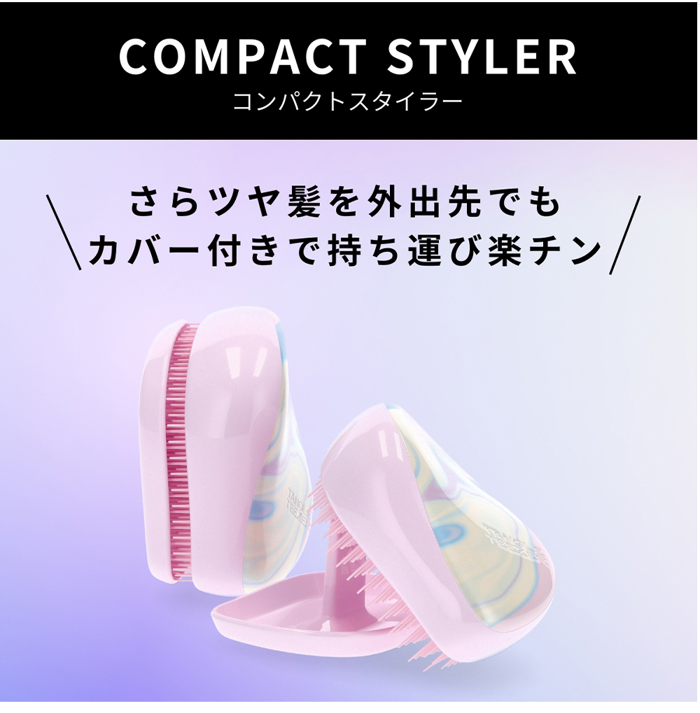 TANGLE TEEZERの「コンパクトスタイラー」は、持ち運びに便利なサイズで、どこでも簡単に髪をとかせるヘアブラシです。ユニークな二段構造のブラシは、髪の絡まりを優しくほどき、ダメージを抑えながら、滑らかでツヤのある髪に整えてくれます。