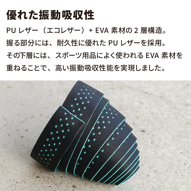 ●PUレザー+EVAの2層構造で、路面の振動を効果的に吸収し手の疲労を軽減。