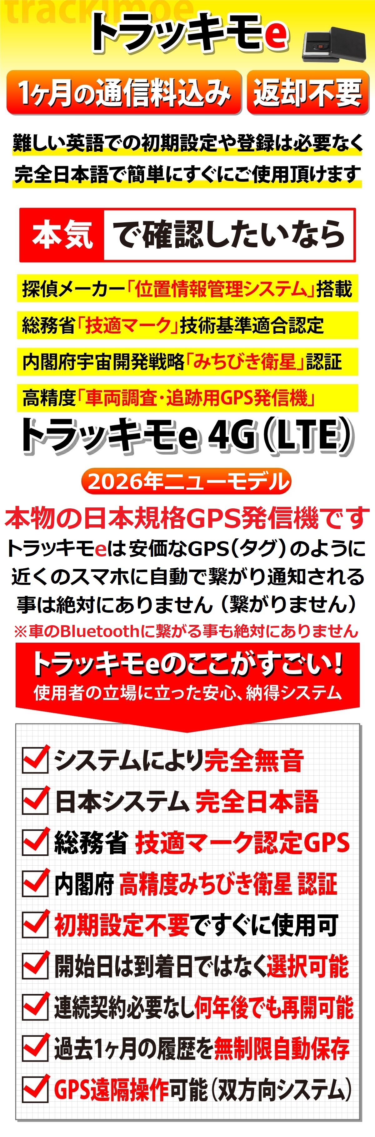 GPS発信機と分かる内容は一切記載しません。