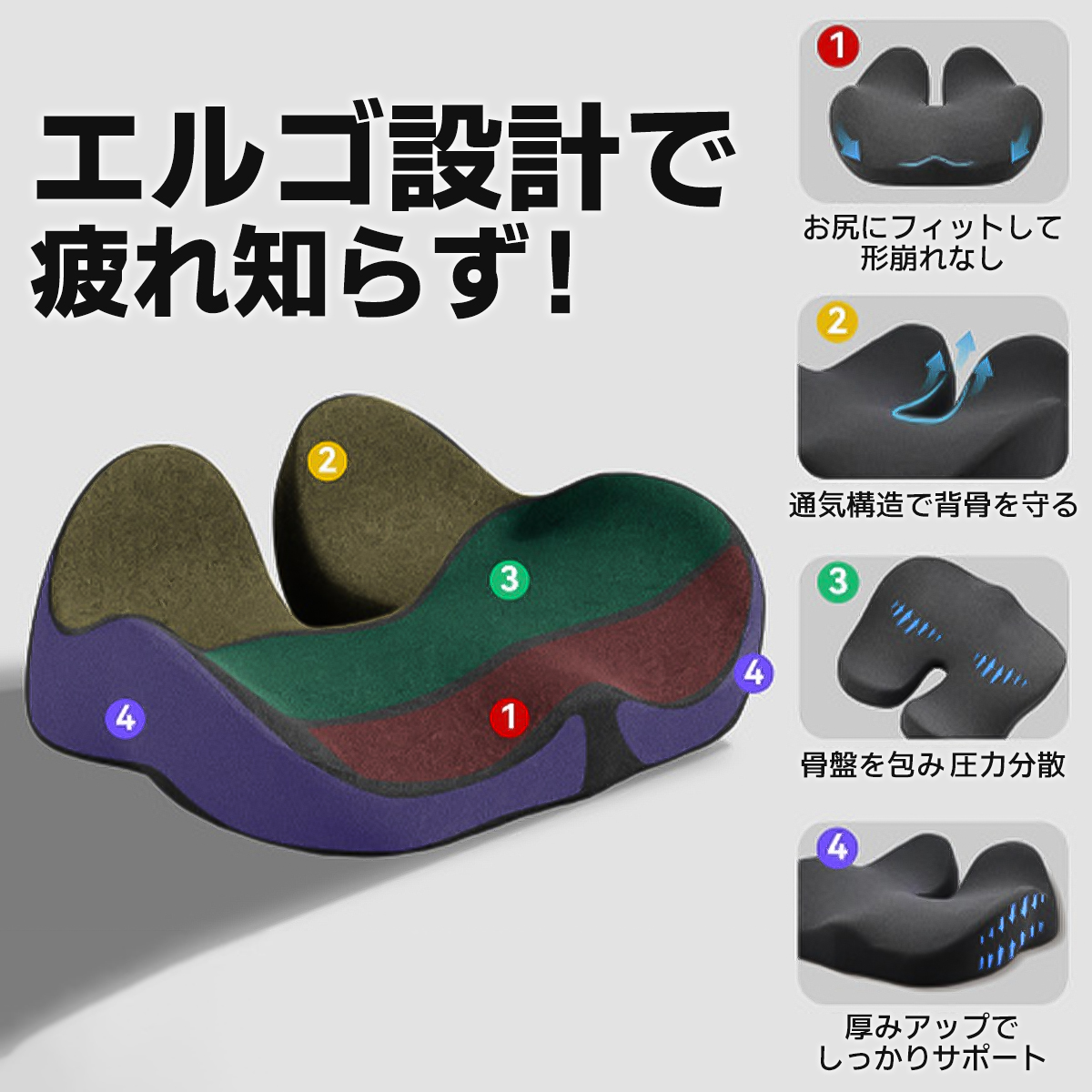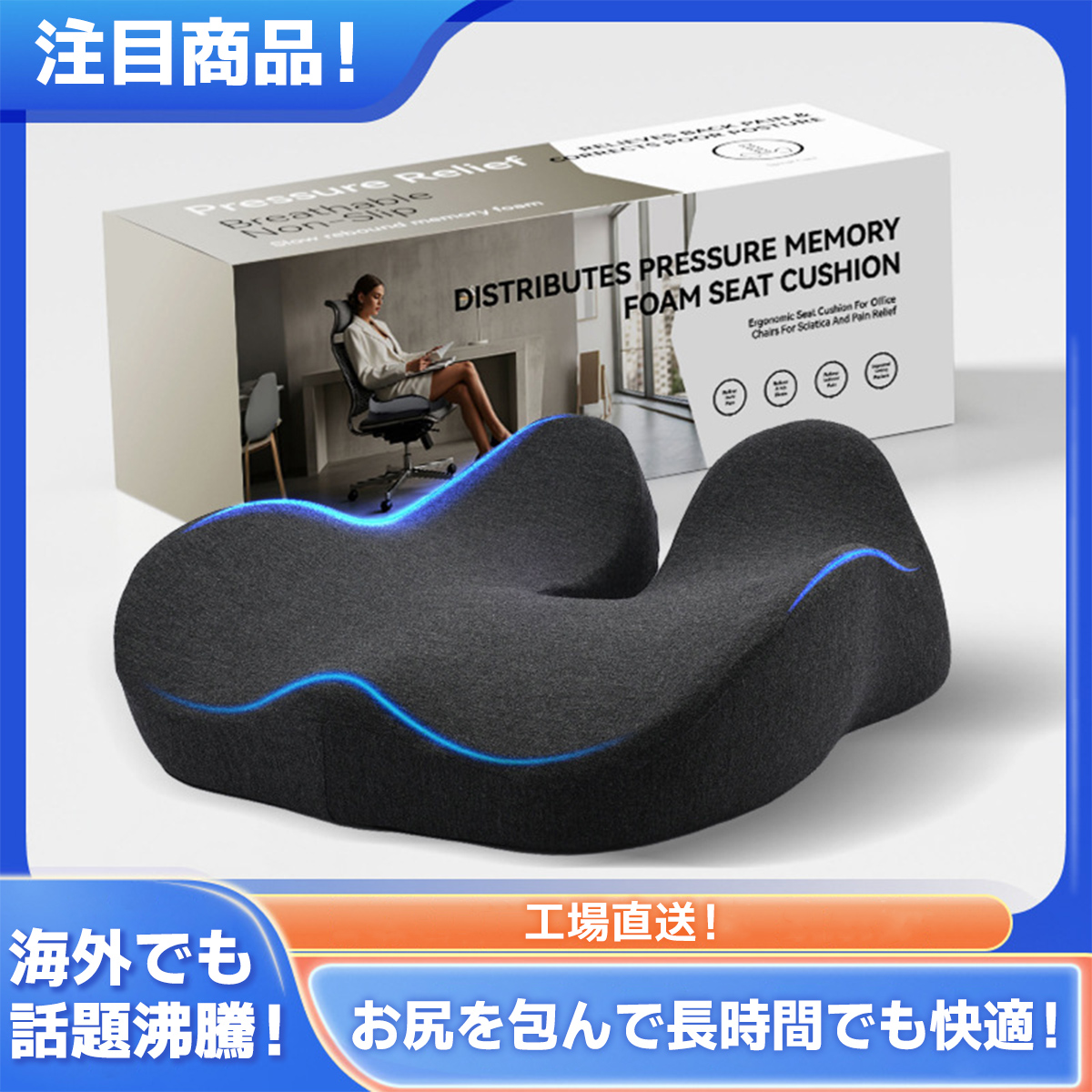 クッション 椅子 腰痛 座布団 骨盤矯正 腰痛 姿勢矯正 坐骨神経痛 猫背矯正 低反発 大きい お尻 傷み 疲れない デスクワーク