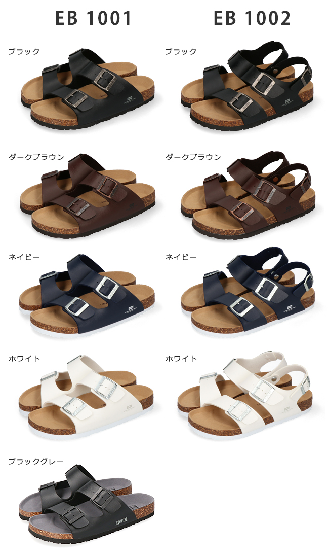 エドウィン サンダル メンズ コルク 黒 フットベットサンダル かかとストラップ 歩きやすい 疲れない 幅広 軽量 おしゃれ かかとなし EDWIN EB1001 EB1002 靴