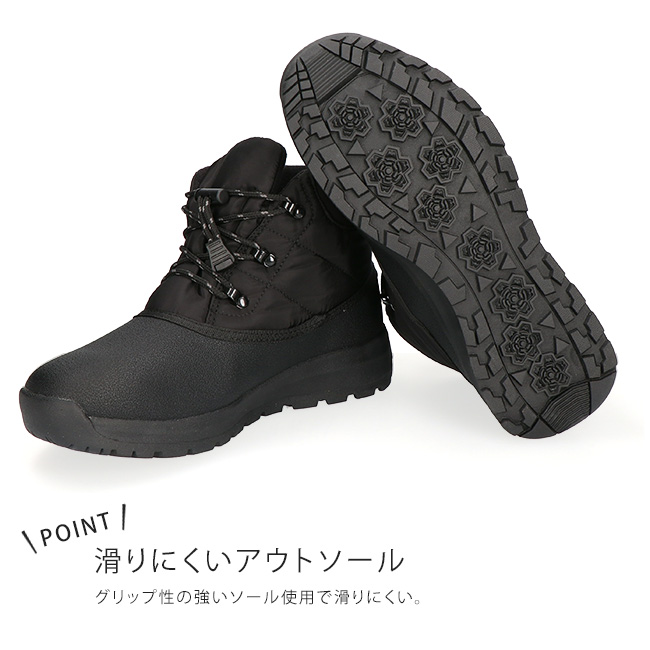 グリップ性の強いソールを使用し滑りにくい設計で雪の日などの滑りやすい路面で力を発揮!