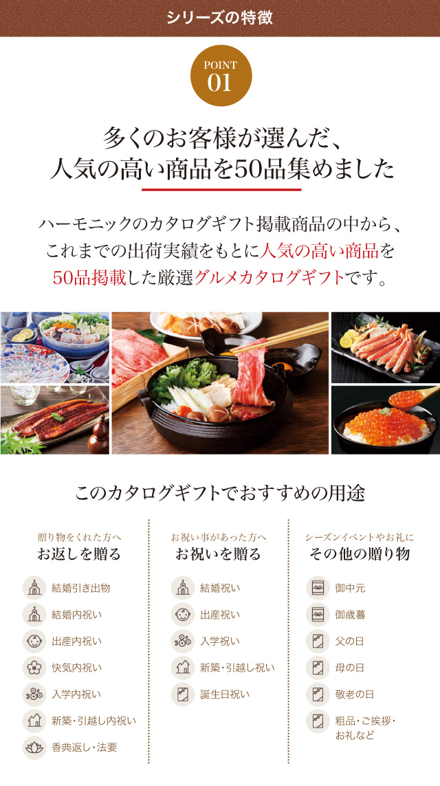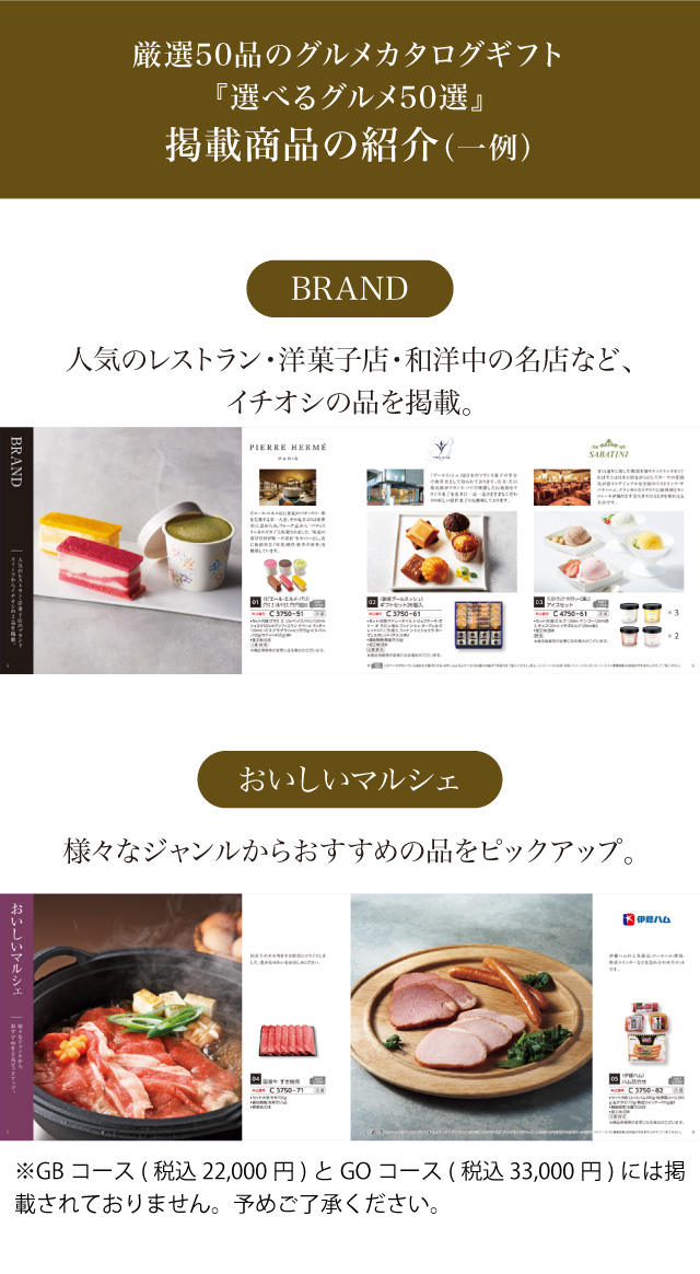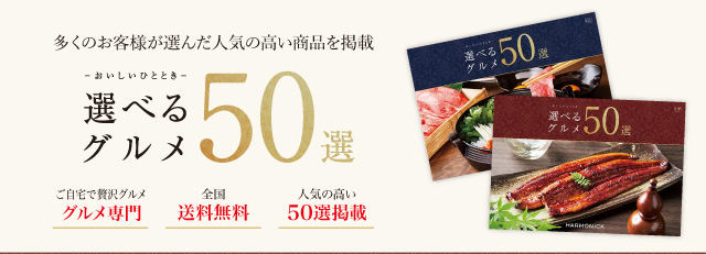多くのお客様が選んだ人気の高い商品だけを掲載したグルメ専門カタログギフト「選べるグルメ50選(GCコース)」のご紹介ページです。
