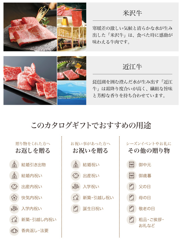 各種お祝いや内祝い、お中元、お歳暮など、幅広くご利用いただけます。