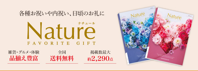お祝いや内祝いなど、様々なシーンでご利用いただける総合版カタログギフト「ナチュール(ブリズ)」のご紹介ページです。