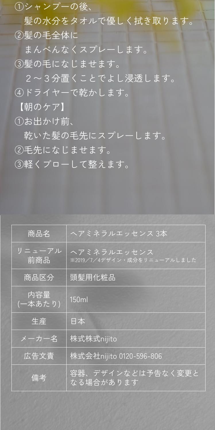 | 商品名 | ヘアミネラルエッセンス |