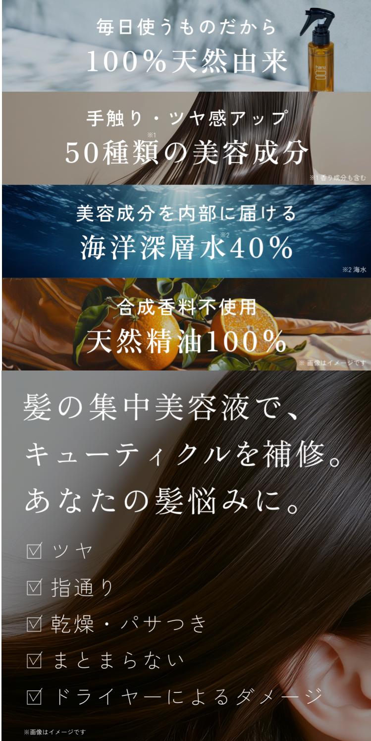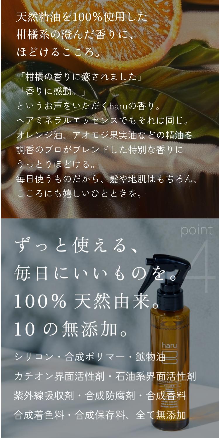 トリートメント(アウトバス) haru 【100%天然由来】 髪の集中美容液 「ヘアミネラルエッセンス 3本セット」