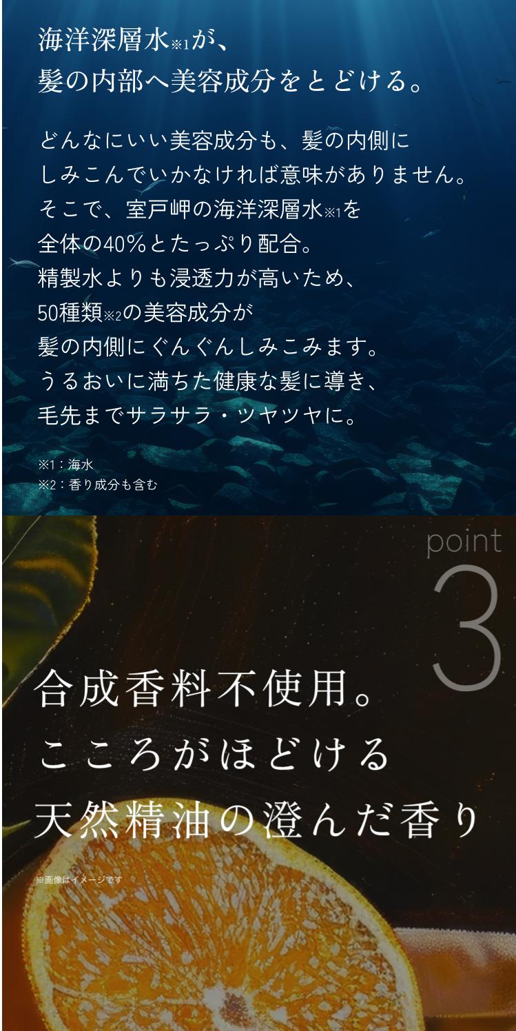 ■海洋深層水が、髪の内部へ栄養をとどけます。