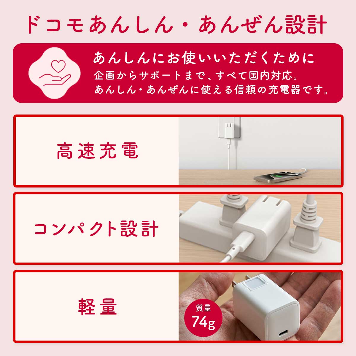 使う人の「こうしたい」に寄り添うストレスフリーな充電器です。