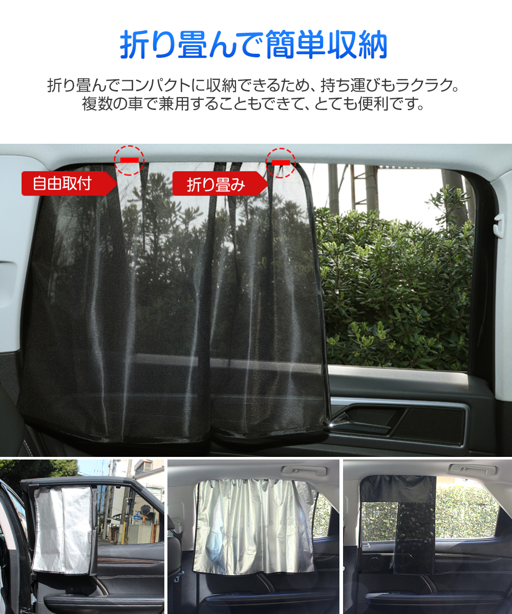 車 カーテン サンシェード マグネット 磁石 遮光 遮熱 後部座席 サイド 車中泊 車用品 目隠し シート 折り畳み 日よけ 自動車 窓 コンパクト uvカット メッシュ