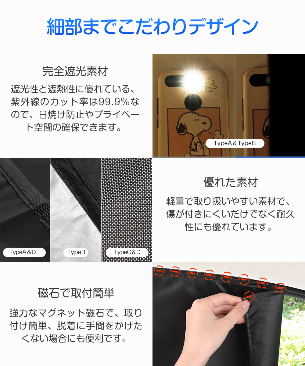 ●遮光率:TypeA&TypeB:99.9%、TypeC:85.5%;