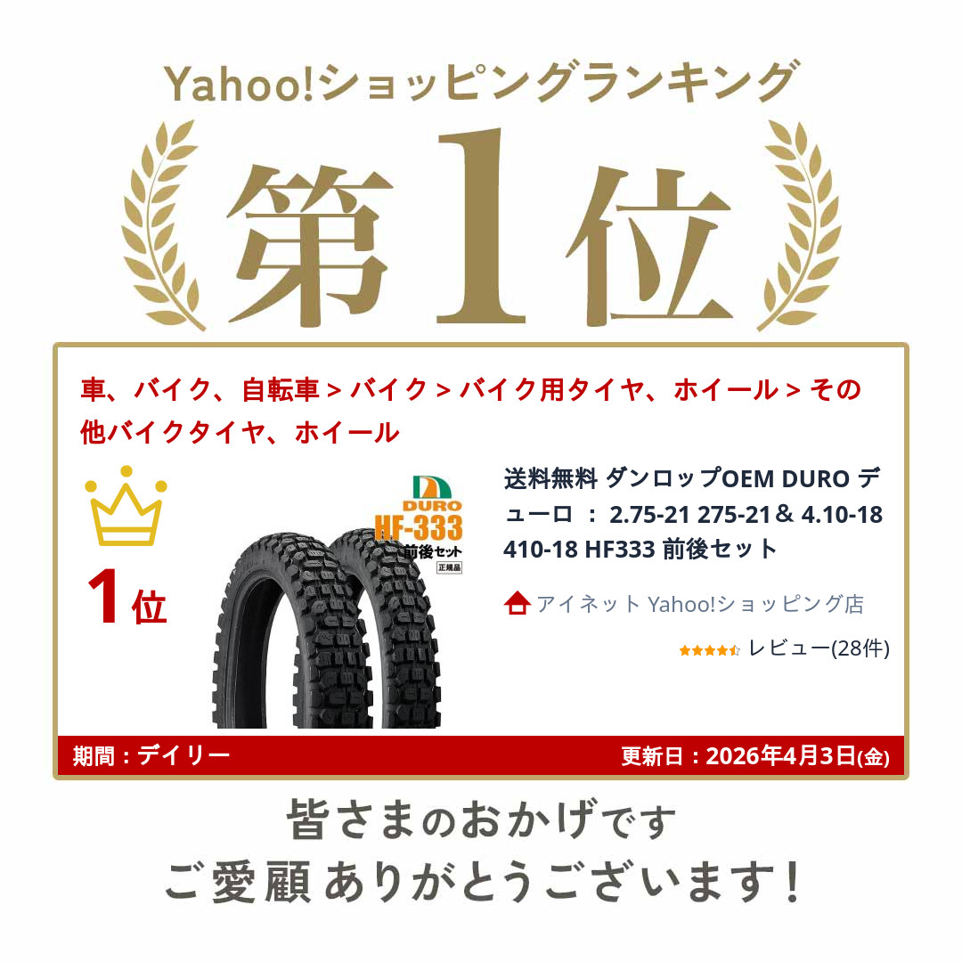 送料無料 ダンロップOEM DURO デューロ : 2.75-21 275-21& 4.10-18 410-18 HF333 前後セット