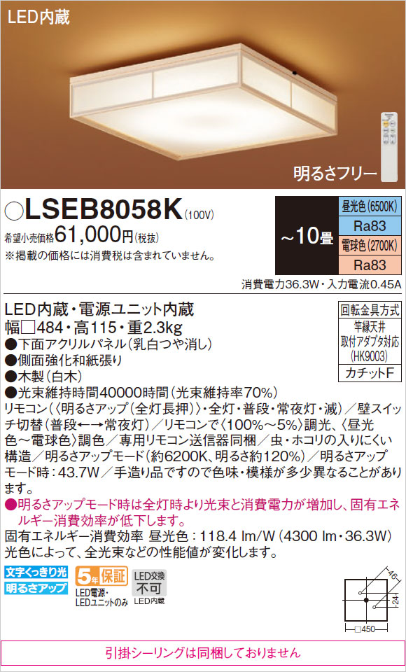 【在庫あり】LSEB8058K Panasonic LED和風シーリングライト 10畳用 調色調光 リモコン 2025/4発売 新品 パナソニック家電製品正規取扱店