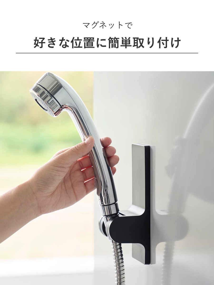 マグネットでお好みの位置に簡単に取り付けができるシャワーホルダーです。お子様からご高齢の方まで、備え付けのシャワーホルダーでは少し不便な時に重宝します。マグネット式なので、使う人に合わせて何度でも位置を変えられ、家族みんなが快適に使えるのが魅力です。