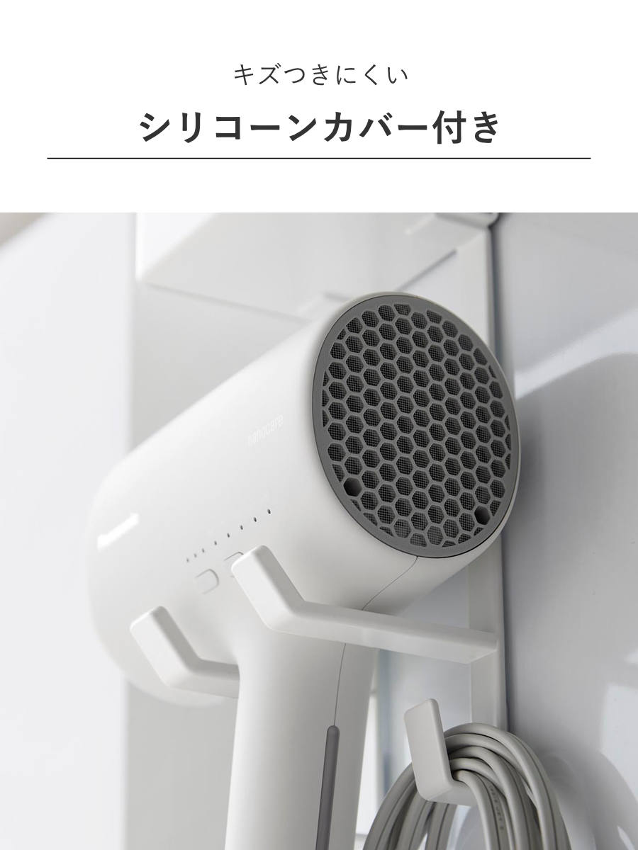ホルダー部にはシリコーン製のカバー付きで、ドライヤーにキズがつきにくく安心して収納できます。