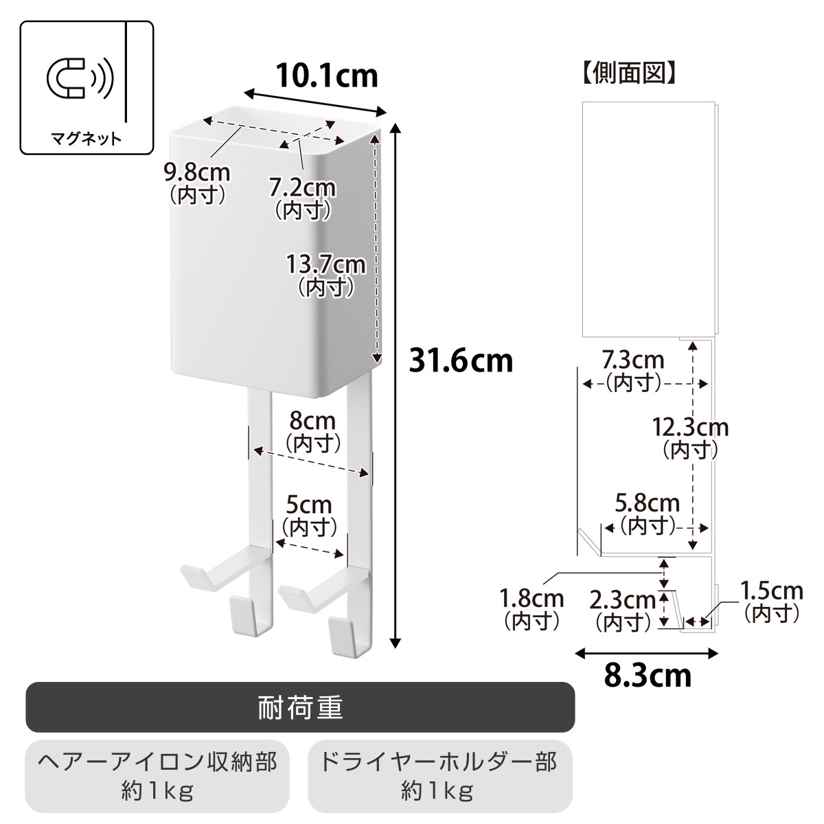 | 備考 | 【使用できる面】 マグネットがつく凹凸のない平らな面、スチール面 ※ドライヤー・ヘアーアイロンのサイズや形状によっては収納できない場合があります。 |