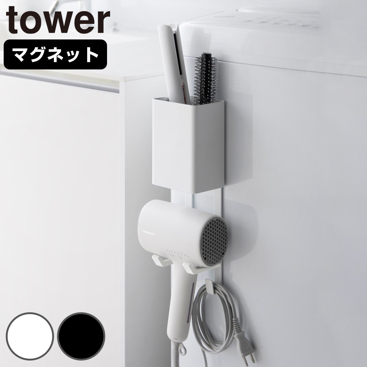 マグネット ヘアーアイロンホルダー ドライヤー ヘアーアイロン 4903208105484 yamazaki towerシリーズ 山実 YAMAZAKI 山崎 やまじつ 白 黒 モノトーン 無地 シンプル スタイリッシュ ホワイト ブラック ホルダー タオル掛け LH20302