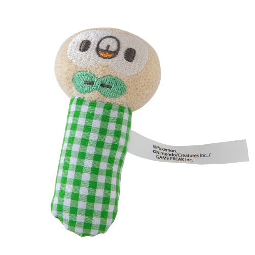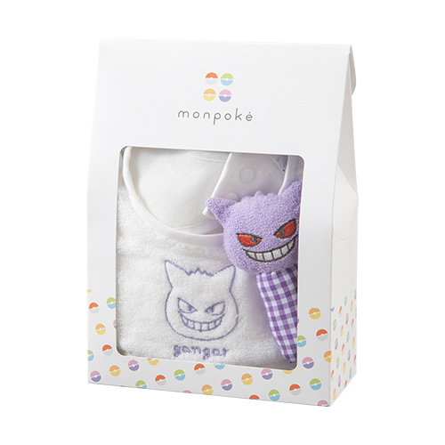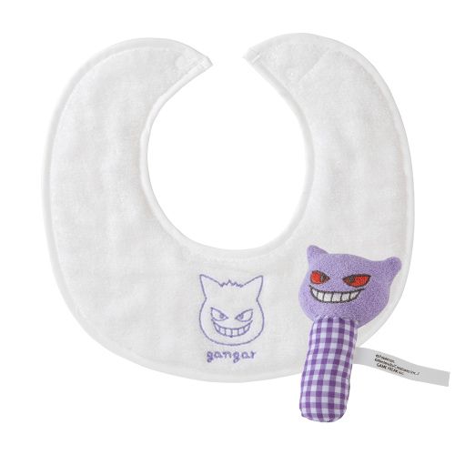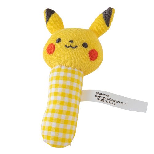 ポケモンの顔の刺繍が入ったスタイとかわいらしい音がなるポケモンの布製ラトルがセット。