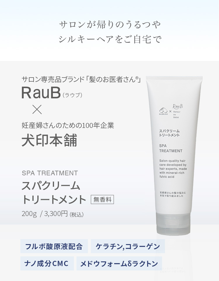 CT037 犬印本舗 スパクリームトリートメント 200g ケラチン シルクコラーゲン ミネラル トリートメント フルボ酸 キューティクルケア 自然由来 天然由来 保湿 モイスト 無香料 妊娠中 出産後 産前 産後 レディース ヘアケア ツヤ 潤い 犬印 RauB ラウブ