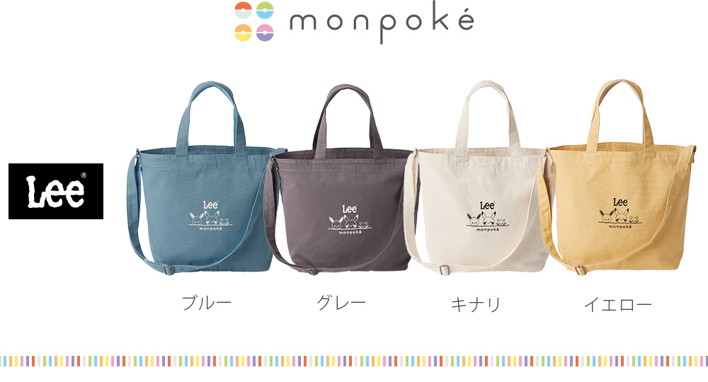モンポケ Lee 犬印 帆布 マザーズバッグ ブルー グレー キナリ イエロー マザーバッグ ショルダー トート ピカチュウ ポケットモンスター イーブイ デデンネ