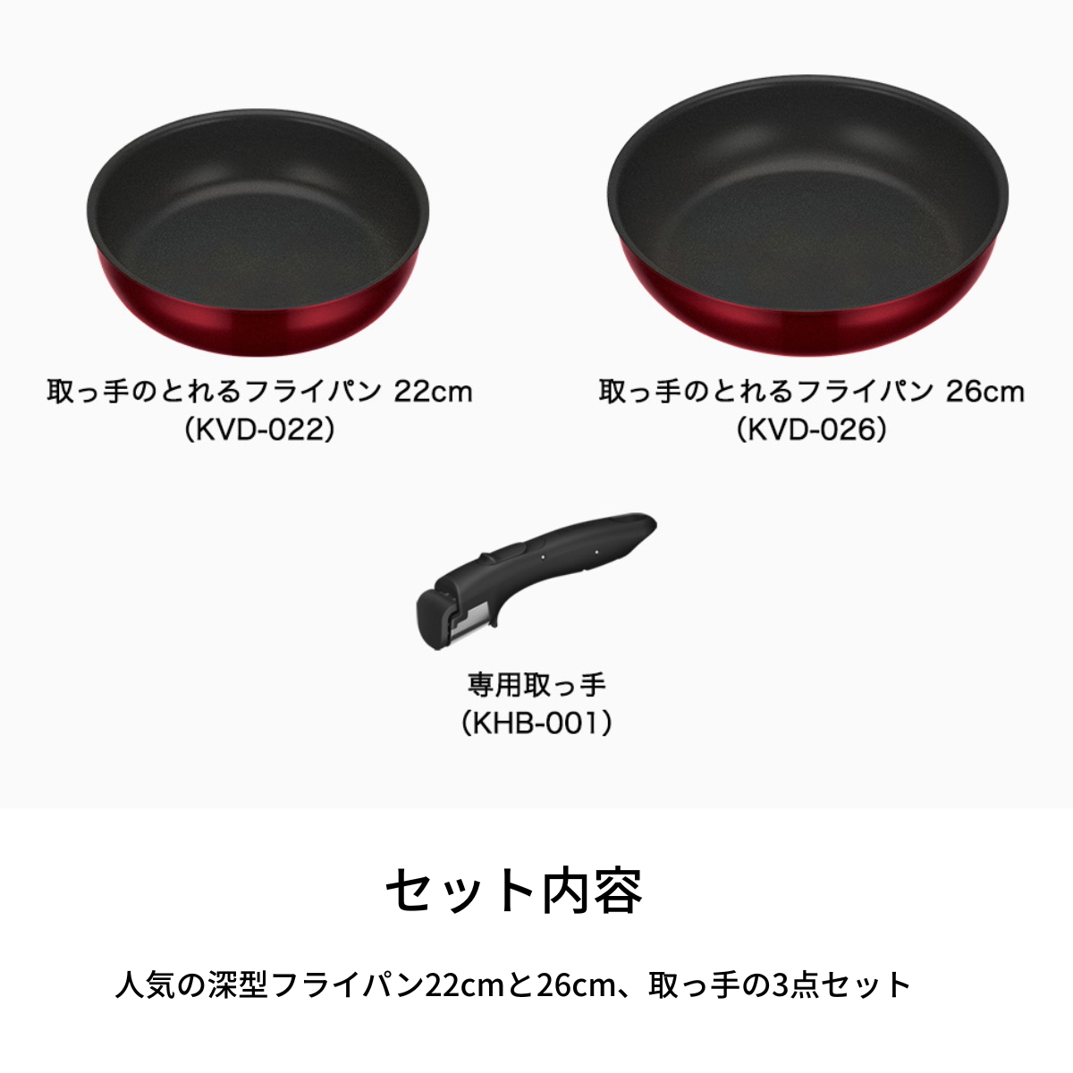 サーモス IH対応 取っ手のとれるフライパン 3点セットDA ディープレッド KSD-3A DR