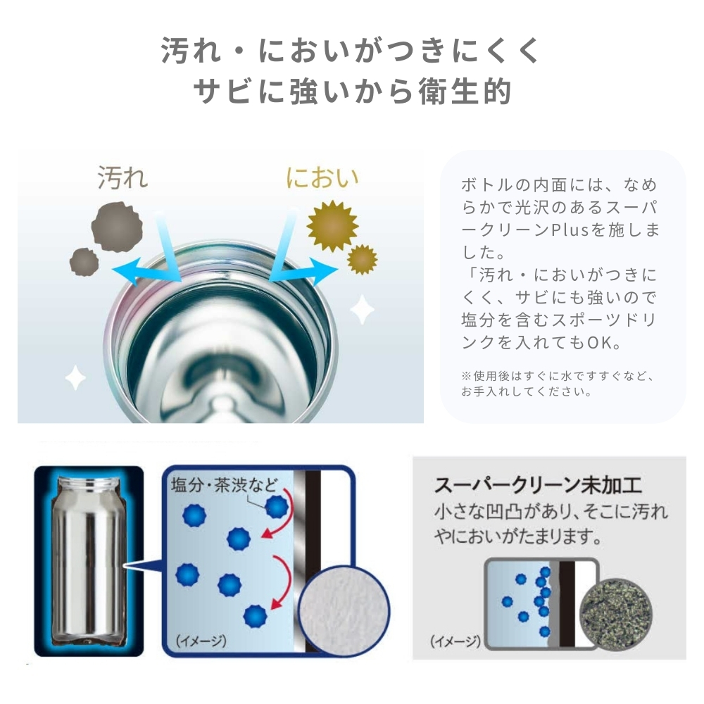 ボトル本体、ふた、飲み口は食器洗い乾燥機で洗浄可能です。必ず分解してから洗ってください。使用後はスポーツドリンクなどを入れた場合はすぐにすすいでください。