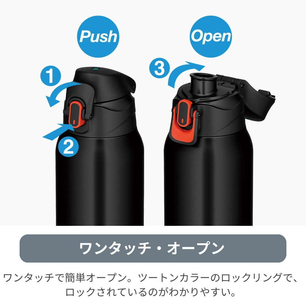 | 商品名:サーモス 真空断熱スポーツボトル FJS-1000F 水筒 1L マグ ステンレス 保冷専用 カバー付き スポーツ飲料対応 ワンタッチ ポーチ ショルダー 子供 大人 キッズ 間口広い スクリュー 学校 スポーツ 直飲み 部活 運動 ジム -商品説明- ポーチにすべりにくい「グリップサポート」を採用!さらに飲みやすくなりました。 人気のスポーツボトルがリニューアル。両手で握ったときにすべりにくい加工を施したポーチや、大きく開いて飲みやすいキャップユニットなど使いやすさにこだわりました。 すべりにくいグリップサポート シリコン素材のプリント加工で、両手で持ちやすく、飲みやすい。 飲みやすい飲み口・フタ構造 フタが大きく開き、飲みものの流れを良くする空気穴で、飲み口をくわえても一気に飲める。 軸が下がってさらに飲みやすい(※当社比) ワンタッチ・オープン ワンタッチで簡単オープン。 ツートンカラーのロックリングでロックされているのがわかりやすい。 ハンディポーチ 高いホールド性のハンドル。 丈夫なソコ ポーチソコに摩擦に強い素材を採用。 ねじれにくく、肩に優しい幅広なストラップ 氷が入るワイドな口径 スポーツ飲料OK! -特徴・品質- ・真空断熱技術で高い保冷効力を実現 -仕様- ・カラー: ブラックオレンジ(BKOR)、ブラックパープル(BKPL)、ブルーピンク(BLP)、ネイビーミント(NVMT) ・実容量(L):1.0 ・保冷効力(6時間):9℃以下 ・口径(約cm):4.5 ・本体寸法/幅×奥行×高さ(約cm):8.0×8.5×27.5 ・本体重量(約kg):0.5 保冷効力とは、室温20℃±2℃において製品に4℃以下の水をキャップユニット下端まで満たし、水温が4℃±1℃のときからキャップユニットを付けて縦置きした状態で6時間放置した場合におけるその水の温度です。 実容量とは、キャップユニット下端までの容量です。ご使用の際は、取扱説明書をご確認いただき適正な量を入れてください。 本体寸法(ポーチを含まず)は0.5cm単位、本体重量(ポーチを含む)は0.1kg単位で表示しています。 -機能- ・ワンタッチオープン、グリップサポート、広口設計、スポーツ飲料対応 -使用・手入れについて- 使用前後の清掃を推奨し、直接の日光や高温を避けた場所で保管してください。 ストラップは洗濯可能ですが、ボトル本体は手洗いを推奨します。 -注意事項- ・商品の色はできる限り実物に近づけていますが、ディスプレイ設定や撮影条件により色味が異なる場合があります。ご了承ください。 ・ご注文のタイミングや内容により、購入後のキャンセルや修正が制限される場合があります。 ・同時に複数のご注文があった場合、システム上の遅延により在庫がないにも関わらず購入できてしまう場合があります。そのような場合は速やかにメールでお知らせいたします。 |