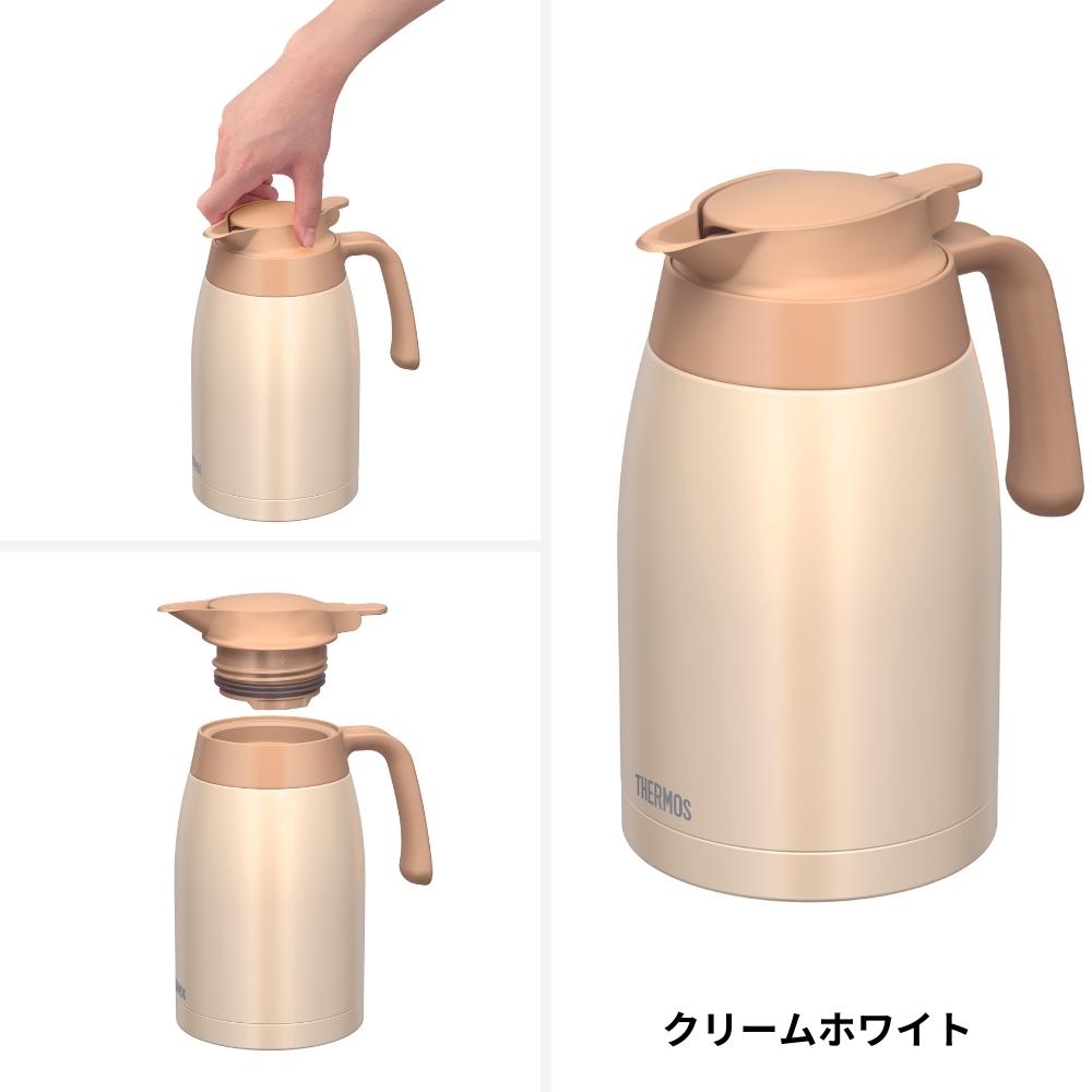 | サーモス ステンレスポット TTB-1501 卓上用ポット ステンレス製魔法びん 節電 保温 保冷 1.5L ステンレス 節電にも! 電気などのエネルギーを使わず保温・保冷ができる ステンレス製魔法びんの卓上用ポットのカラーを一新! ステンレス製魔法びん構造で保温・保冷ができ、飲みものを最適な温度に保つ卓上用のポットです。 飲み物を最適な温度に保つことができるため、季節を問わず快適にご利用いただけます。 また、ワンタッチレバーの使用により、片手で簡単に注ぐことができ、倒れてももれない安心設計が採用されています。 さらに、本体は約7cmの広口で氷も入れやすく、手を入れて奥までしっかり洗えることが特長です。 中せんはパーツが細かく取り外せ、内側の流路まで洗いやすい衛生的設計となっています。 【特徴・品質】 ・ステンレス製魔法びん構造で高い保温・保冷力を持つ。 ・シールパッキンとベンパッキンにはシリコーンゴムを使用し、耐久性と密封性を確保。 【仕様】 ・容量:1.5L ・口径:7cm ・幅:19cm ・奥行き:12.5cm ・高さ:22.5cm ・本体重量:600g ・カラー:ブラウンゴールドBWG、マットブラックMTBK、ステンレスマットSMT、クリームホワイトCRW 【機能】 ・押すだけで注げるワンタッチレバー ・軽量・コンパクト設計 ・保温効力:72℃以上(10時間) ・保冷効力:10℃以下(10時間) 【使用・手入れについて】 手を入れて洗える広口設計なので、丸洗いが可能です。 中せんはパーツが細かく取り外せるため、内側の流路まで洗いやすく、清潔に保つことができます。 注意事項 ・実物に近い色を画像で表現していますが、撮影環境、お使いのディスプレイなどの条件によって多少の誤差が生じる場合がございます。 ・ご注文タイミングやご注文内容によっては、購入履歴からのキャンセル、修正を受け付けることができない場合がございます。 ・複数の同時注文がおきた場合、システムのタイムラグの理由から、在庫切れの状態でも購入が可能となる場合がございます。その場合、こちらからメールでご連絡させて頂きます。 |