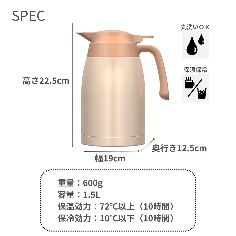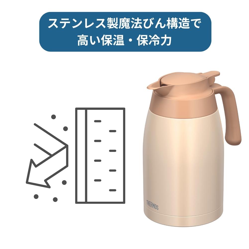 ステンレス製魔法びん構造で保温・保冷ができ、飲みものを最適な温度に保つ卓上用のポットです。