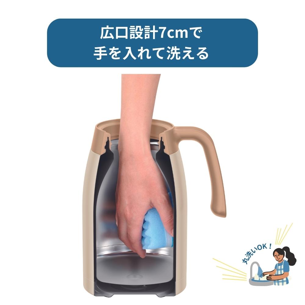 さらに、本体は約7cmの広口で氷も入れやすく、手を入れて奥までしっかり洗えることが特長です。