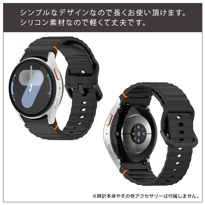 高品質なSilicone(シリコン)仕様のGalaxy Watchバンド(ベルト)です。シンプルなデザインなので長くお使い頂けます。ビジネスから日常生活までご利用頂けます。シリコン素材なので軽くて丈夫です。シンプルなウェーブデザインでファッショナブルです。バンド(ベルト)は、柔らかくて手首が疲れにくくなっております。バンド(ベルト)を付けたまま充電可能です。