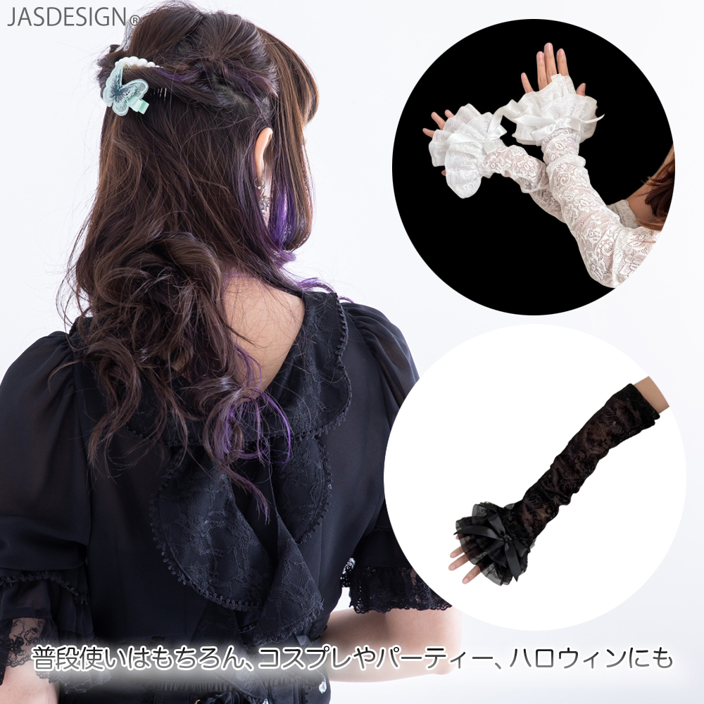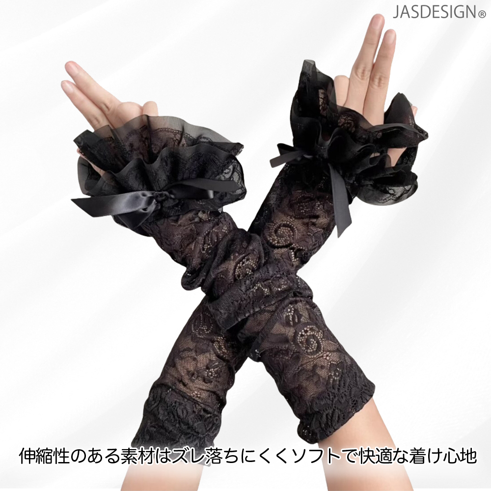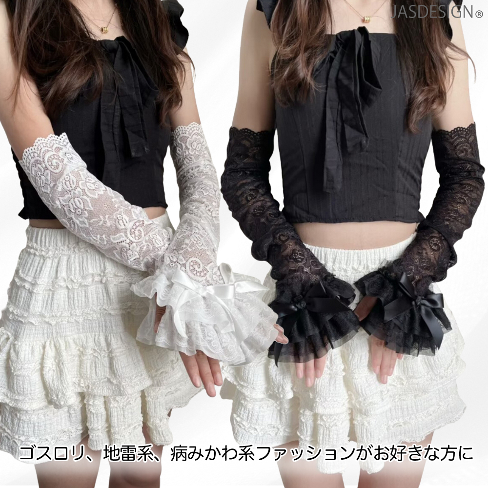 付け袖 アームカバー つけ袖 レディース レース リボン フリル 黒 白 ゴスロリ ロリータ 地雷系 アームスリーブ 薄手 花柄 かわいい コスプレ JM-437