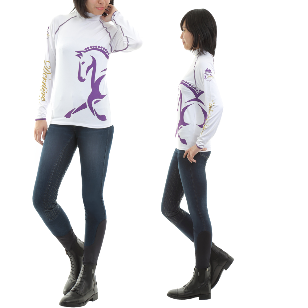 ジーンズ・スタイルで、お尻から足元にかけて施されたグリップ力の強いシリコン素材が、騎乗時の安定感を大幅にアップさせます。ストレッチ性の高いデニム素材製。シリコン部位含め伸びが良く、体に合わせてフィットします。オールシーズンモデル(特に春・夏に適した素材感です)。