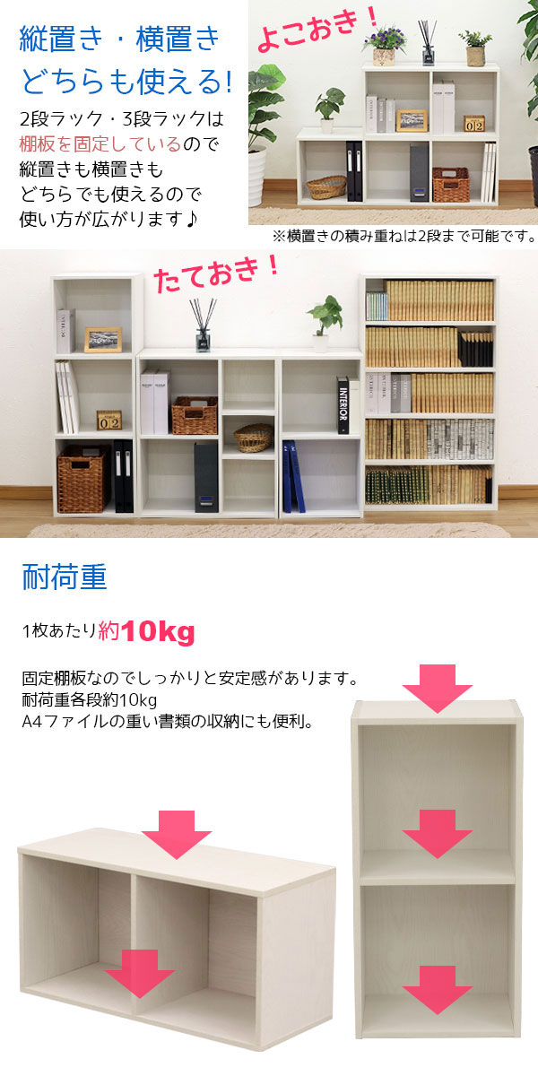 A4カラーボックス2段 A4ファイル対応 収納棚 幅36cm 奥行29.2cm 高さ70.6cm(約 奥行30cm 高さ70cm) 縦置き 横置き サイドデスク 教科書 学用品 MBA-100 単品