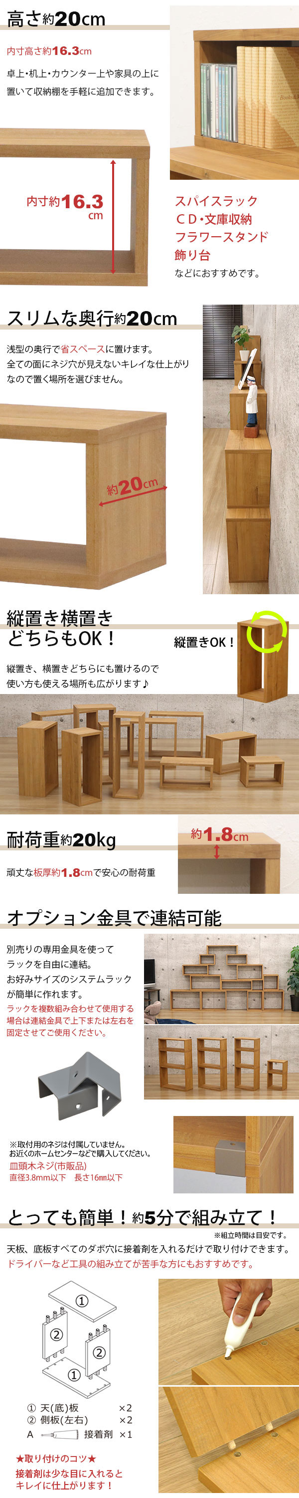 スリムな奥行20cm 幅40 高さ20 手軽にちょい足しラック(卓上・文庫・CD・調味料) 単品 の説明