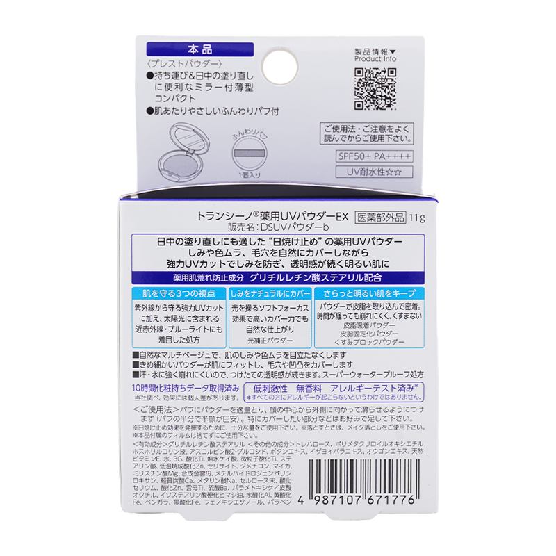 TRANSINO トランシーノ 薬用UVパウダーEX SPF50+ PA++++ 本体 11g 無香料 フェイスパウダー プレストパウダー UVカット[医薬部外品][ギフトラッピング対応]