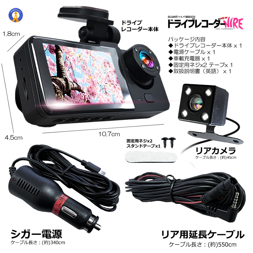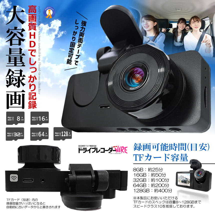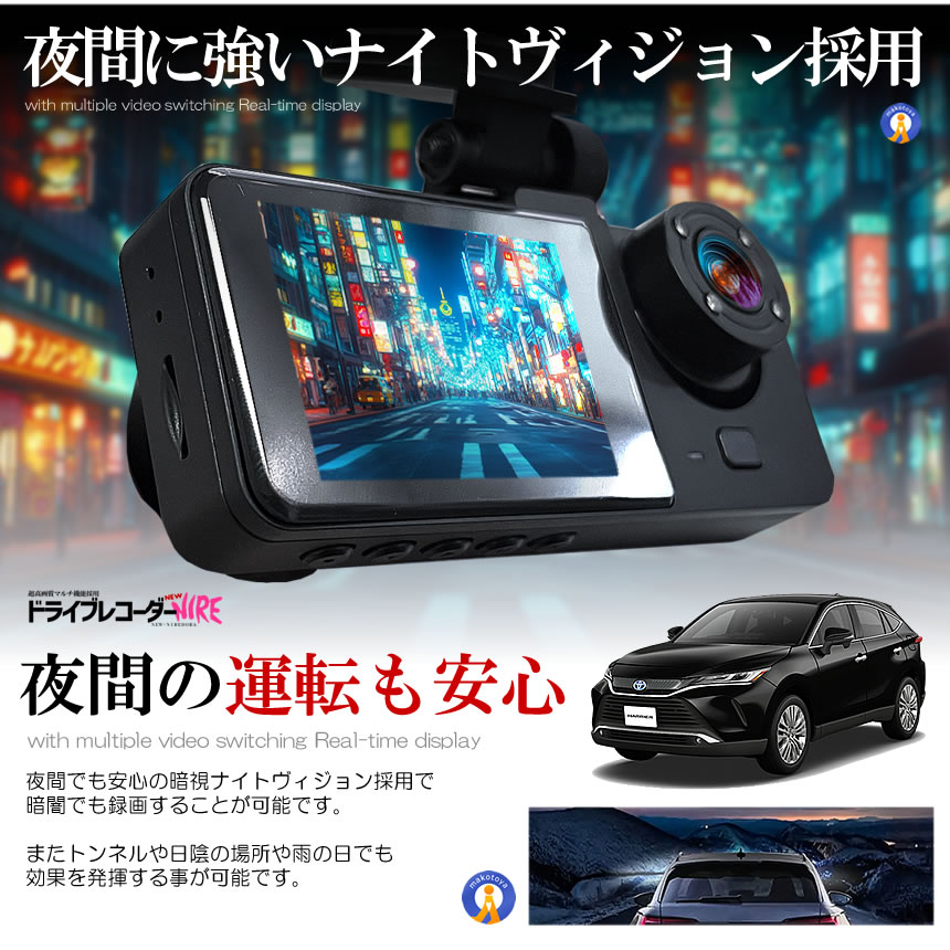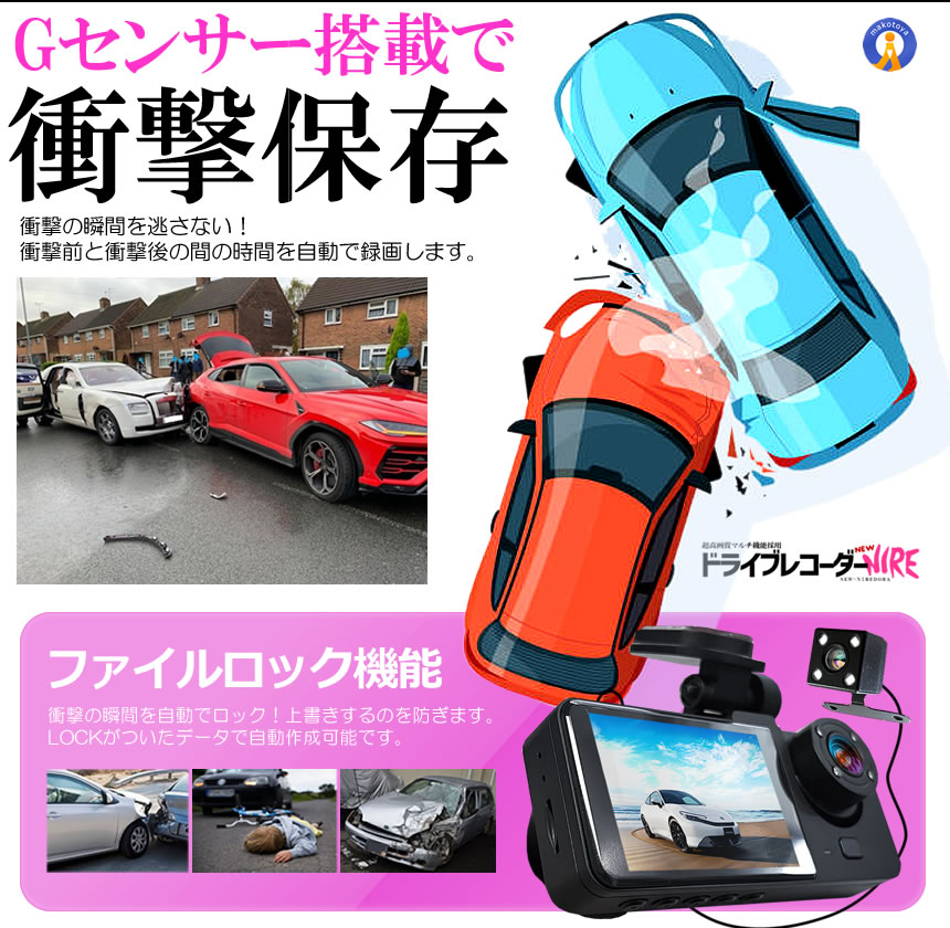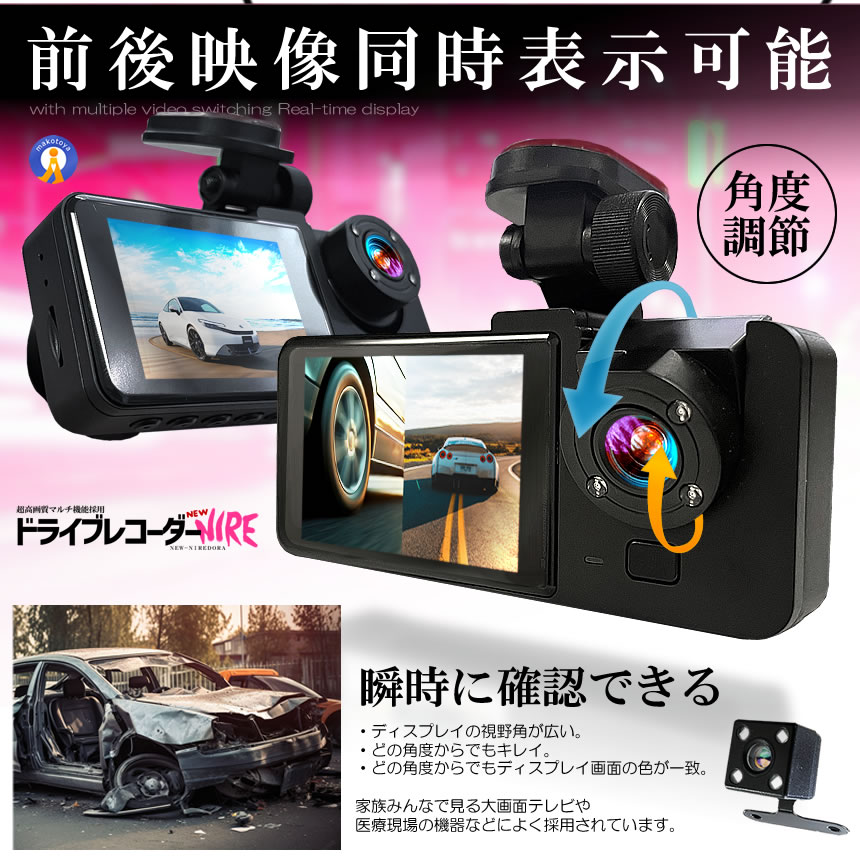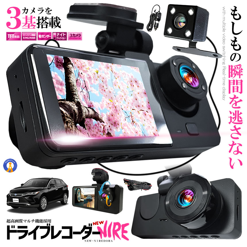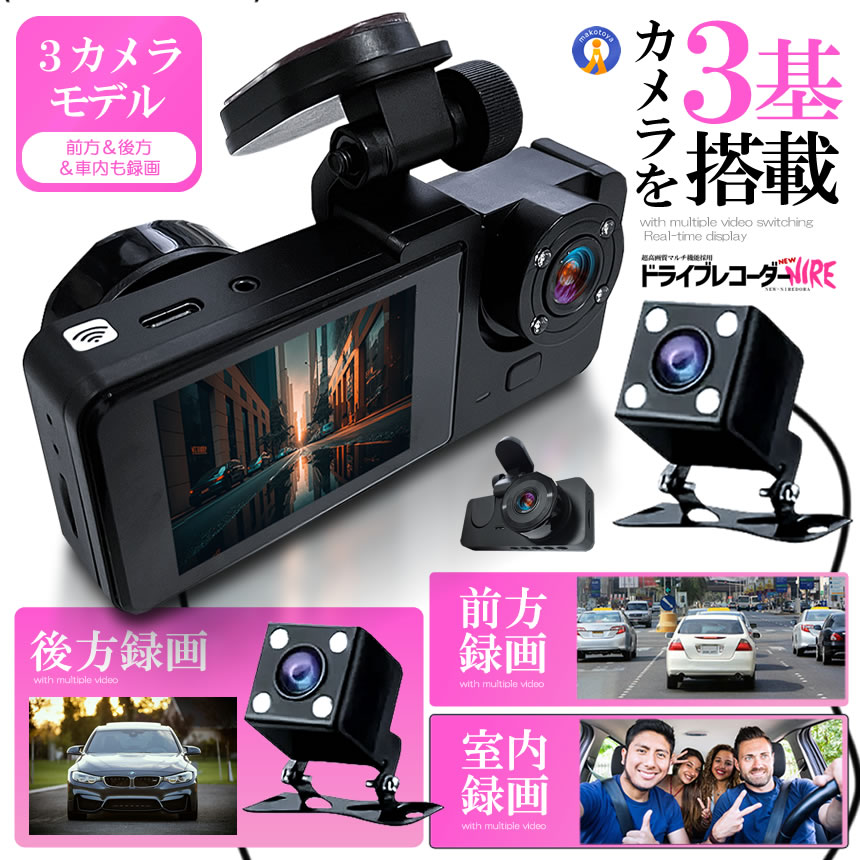 ドライブレコーダー 常時録画スマホ 3カメラ 前後 リア ドラレコ 車 暗視機能 バックカメラ 事故録画 最新 NEW-NIREDRA