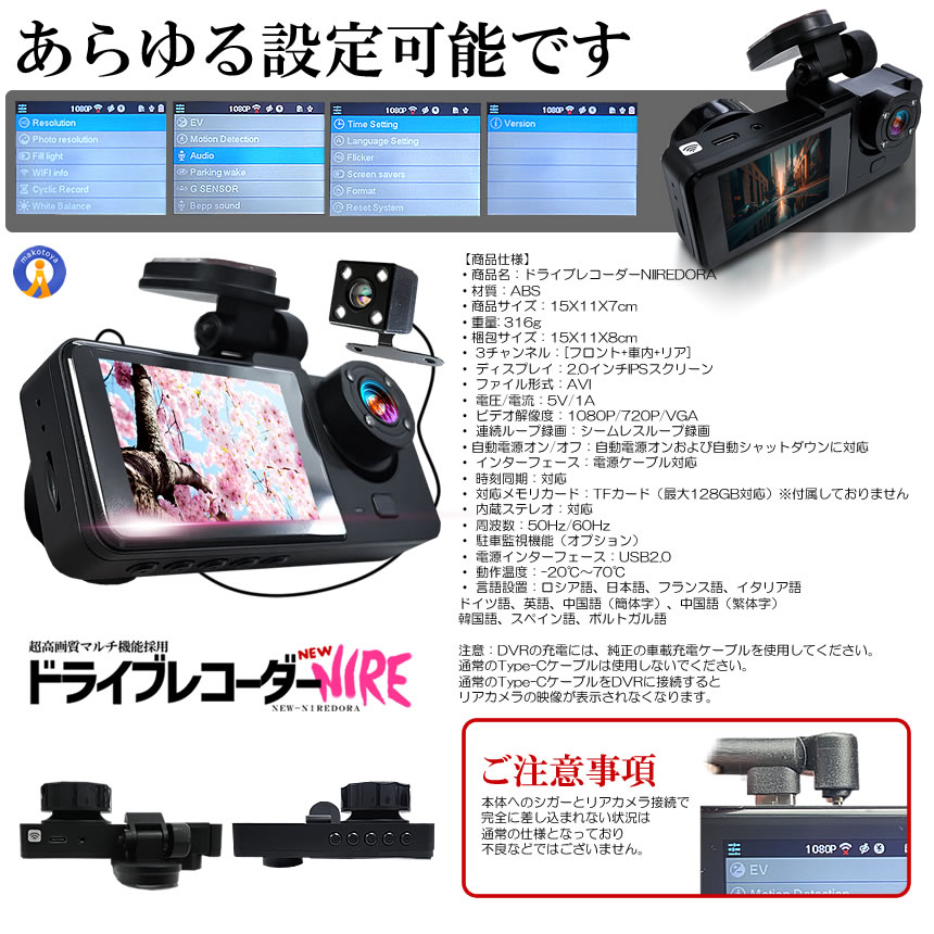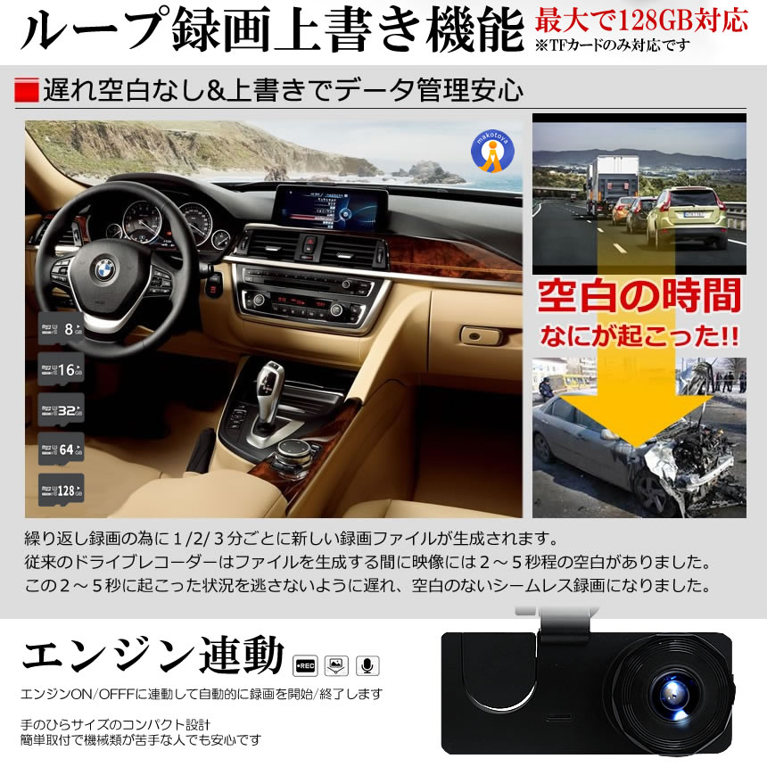●驚異の3カメラモデル!前方&後方&車内も録画