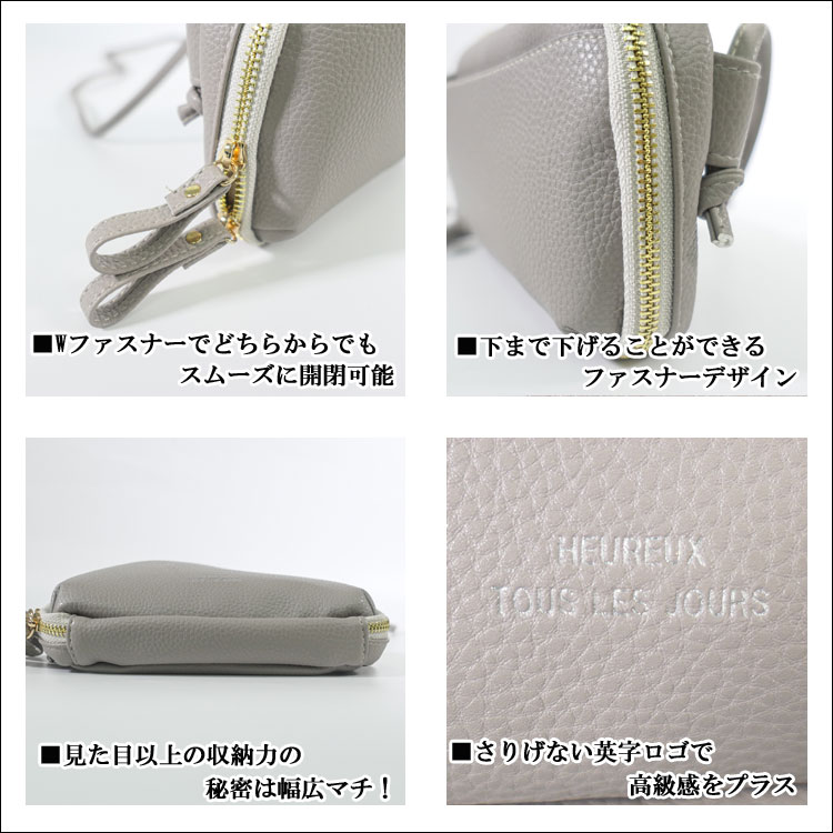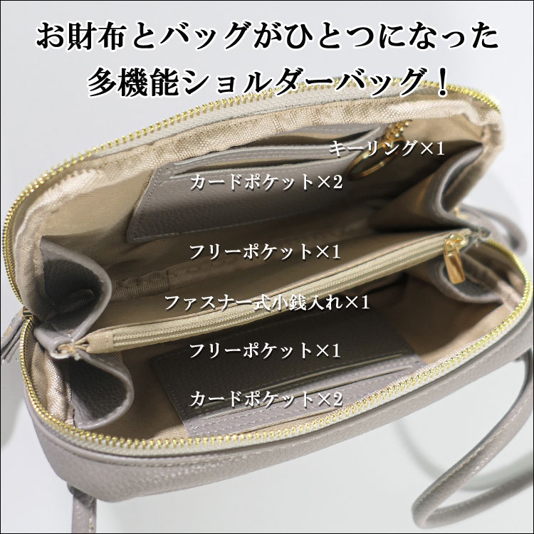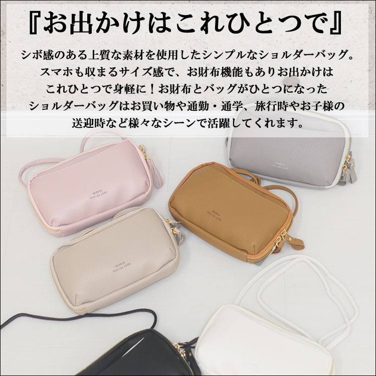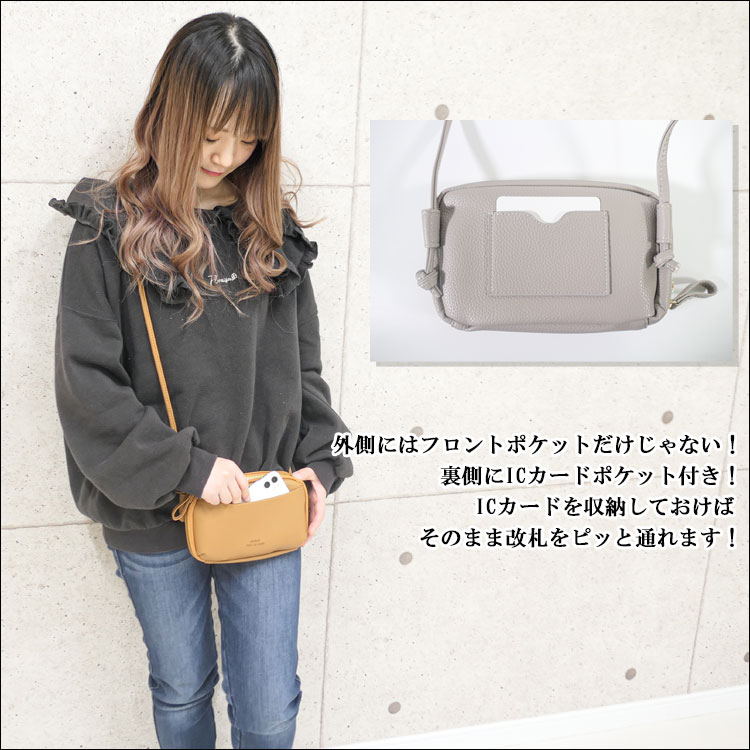 | Point | ・大人可愛い!スマホが入る横型スマホショルダー。 ・上質な合皮素材を使用しシンプルで使いやすい! ・お札も小銭もカードも収納可能で身軽にお出かけできる★ ・ICカードポケット付きで旅行やアウトドア時にも便利○ ・万能なお財布ポシェットは女性へのプレゼントにおすすめ。 |