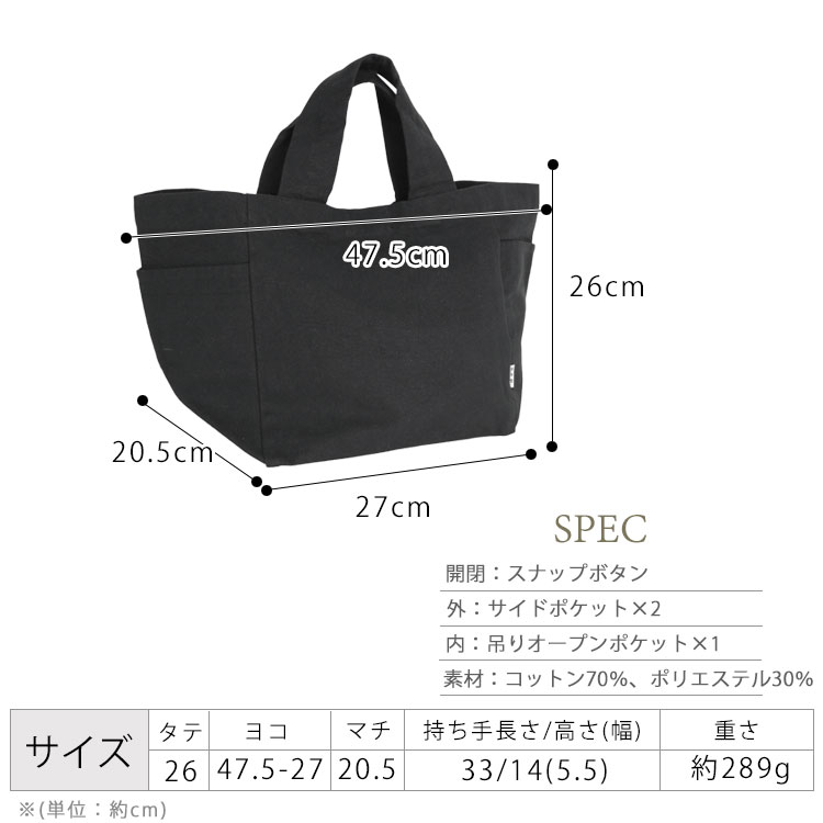 | サイズ | (約)横幅(開閉)47.5cm(底)27cm×縦幅26cm×マチ20.5cm 持ち手長さ33cm×持ち手高さ14cm 持ち手幅5.5cm |