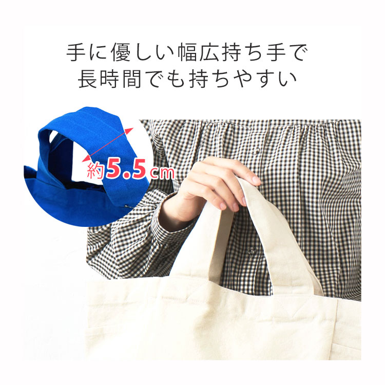 ・横型の舟形トートデザイン。ハンドル部分も厚く設計し丈夫な作り